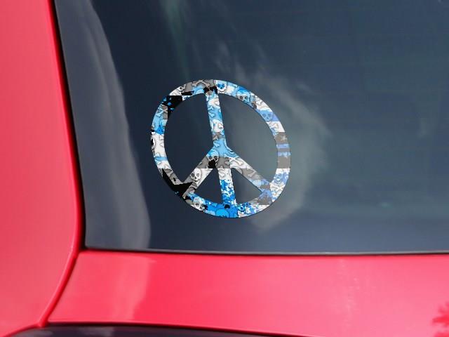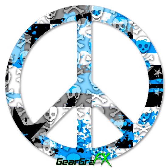Checker Skull Splatter Blue - Peace Sign Car Window Decal 6 x 6 inches