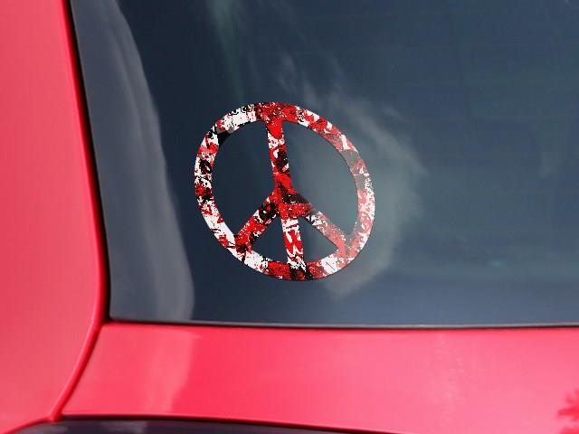 Red Graffiti - Peace Sign Car Window Decal 6 x 6 inches