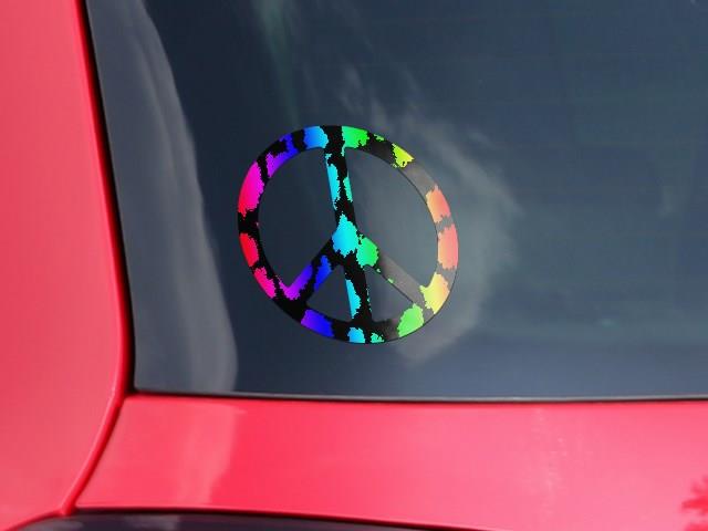 Rainbow Leopard - Peace Sign Car Window Decal 6 x 6 inches