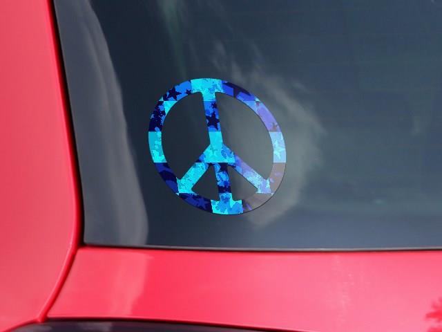 Blue Star Checkers - Peace Sign Car Window Decal 6 x 6 inches