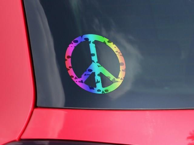 Rainbow Skull Collection - Peace Sign Car Window Decal 6 x 6 inches