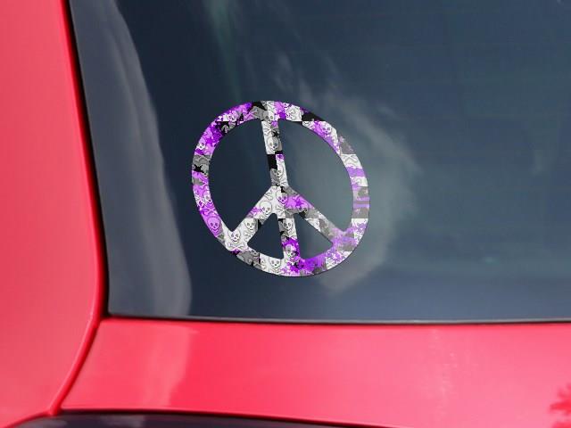 Purple Checker Skull Splatter - Peace Sign Car Window Decal 6 x 6 inches