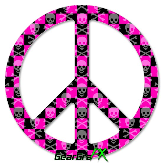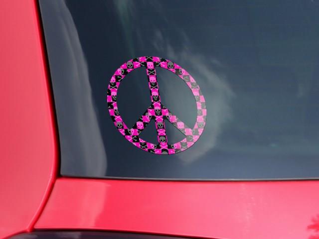 Skull and Crossbones Checkerboard - Peace Sign Car Window Decal 6 x 6 inches