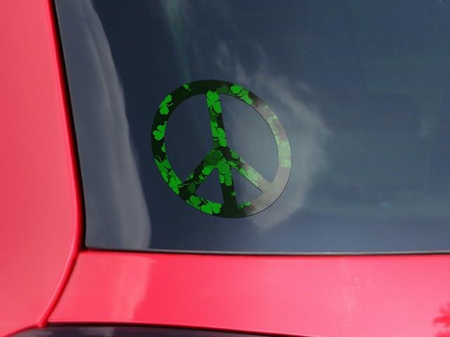 St Patricks Clover Confetti - Peace Sign Car Window Decal 6 x 6 inches