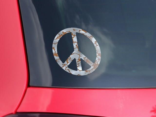 Rusted Metal - Peace Sign Car Window Decal 6 x 6 inches
