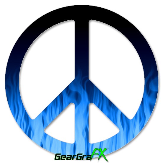 Fire Flames Blue - Peace Sign Car Window Decal 6 x 6 inches
