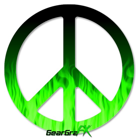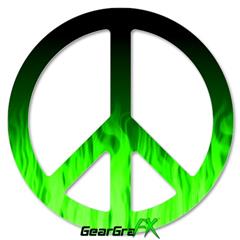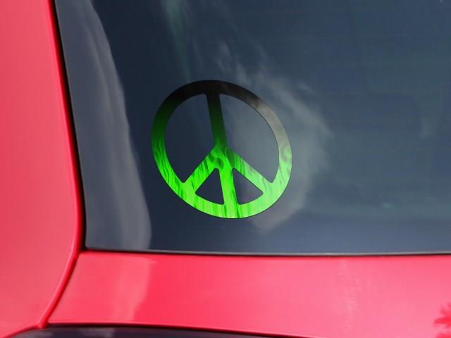 Fire Flames Green - Peace Sign Car Window Decal 6 x 6 inches