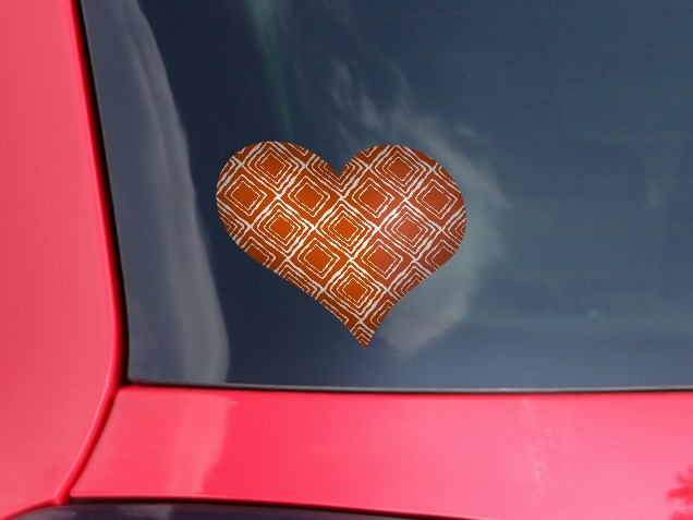 Wavey Burnt Orange - I Heart Love Car Window Decal 6.5 x 5.5 inches