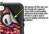 uSkins™ are self adhering vinyl decal style skins and are a great way to add a new look to your existing protective case. uSkins are a composite of two layers of commercial grade materials. The bottom layer is a soft, flexible vinyl with a special removable adhesive that is easily positioned, applied without air bubbles. Next we print the bottom layer with UV protected, fade resistant inks that deliver superb photo quality designs in vibrant colors. Finally we bond a professional grade laminate over the entire skin adding a glossy protective finish.