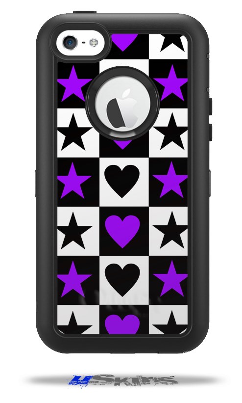 Purple Hearts And Stars - Decal Style Vinyl Skin fits Otterbox Defender iPhone 5C Case (CASE SOLD SEPARATELY)