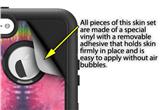 uSkins™ are self adhering vinyl decal style skins and are a great way to add a new look to your existing protective case. uSkins are a composite of two layers of commercial grade materials. The bottom layer is a soft, flexible vinyl with a special removable adhesive that is easily positioned, applied without air bubbles. Next we print the bottom layer with UV protected, fade resistant inks that deliver superb photo quality designs in vibrant colors. Finally we bond a professional grade laminate over the entire skin adding a glossy protective finish.
