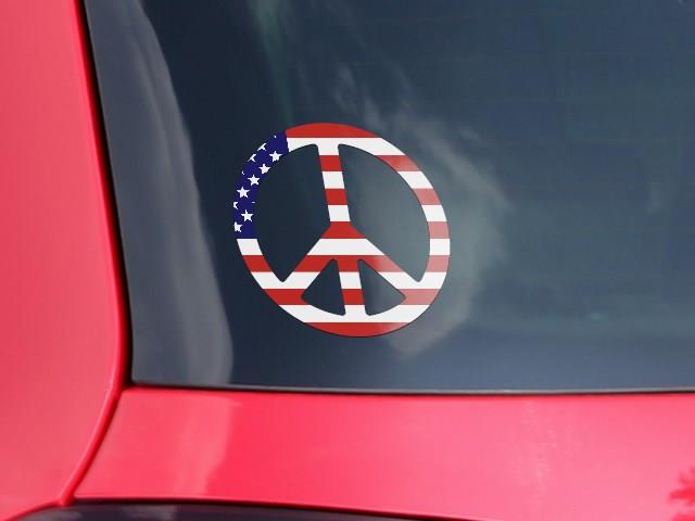 USA American Flag 01 - Peace Sign Car Window Decal 6 x 6 inches