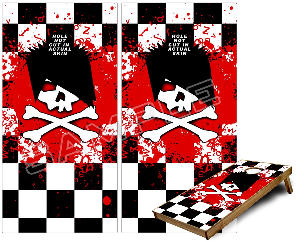 Cornhole Game Board Vinyl Skin Wrap Kit - Emo Skull 5 fits 24x48 game boards (GAMEBOARDS NOT INCLUDED)
