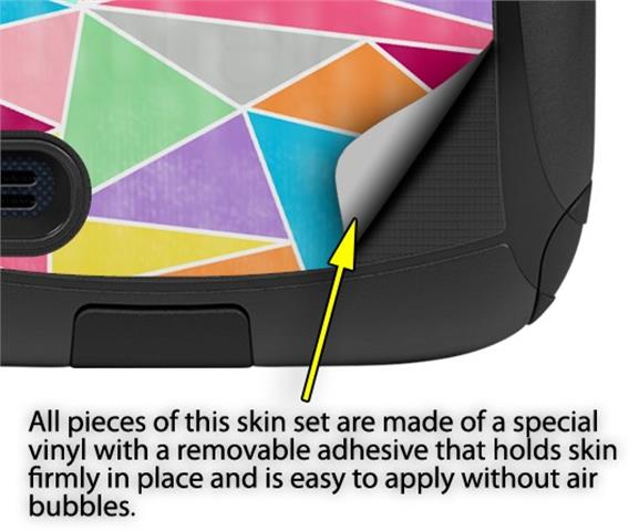 uSkins™ are self adhering vinyl decal style skins and are a great way to add a new look to your protective case. uSkins are a composite of two layers of commercial grade materials. The bottom layer is a soft, flexible vinyl with a special removable adhesive that is easily positioned, applied without air bubbles. Next we print the bottom layer with UV protected, fade resistant inks that deliver superb photo quality designs in vibrant colors. Finally we bond a professional grade laminate over the entire skin adding a glossy protective finish.