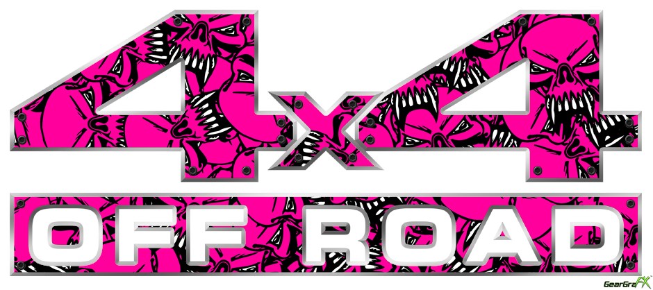 Scattered Skulls Hot Pink - 4x4 Decal Bolted 13x5.5 (2 Decal Set)