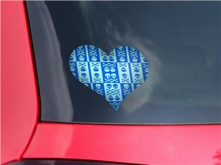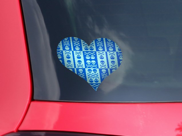 Skull And Crossbones Pattern Blue - I Heart Love Car Window Decal 6.5 x 5.5 inches