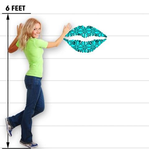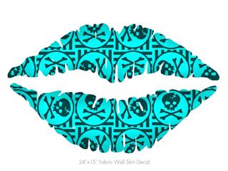 Skull Patch Pattern Blue - Kissing Lips Fabric Wall Skin Decal measures 24x15 inches