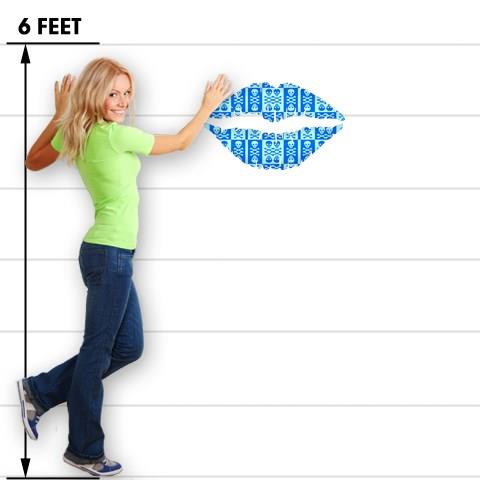 Skull And Crossbones Pattern Blue - Kissing Lips Fabric Wall Skin Decal measures 24x15 inches