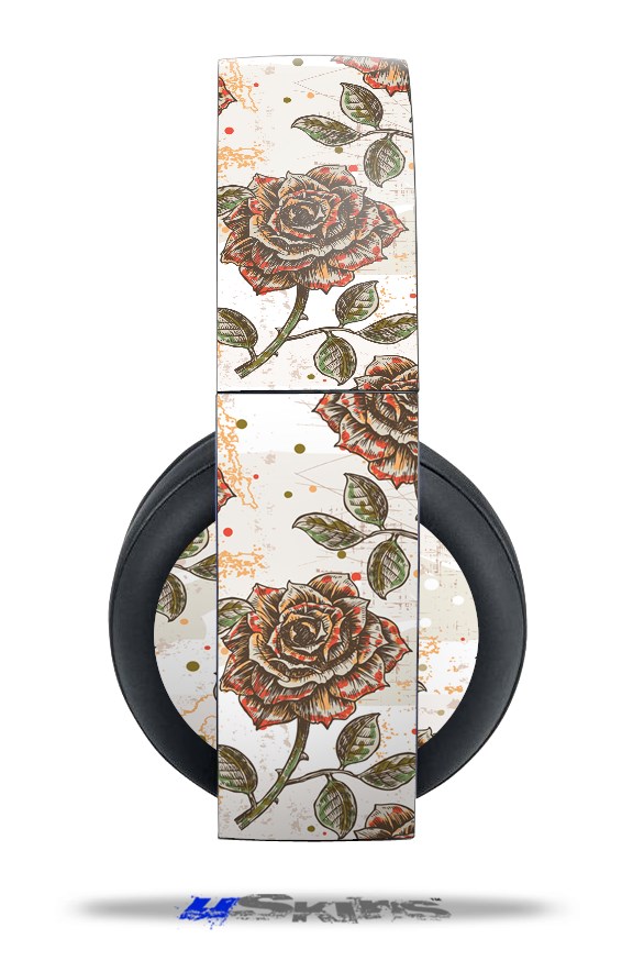 Vinyl Decal Skin Wrap compatible with Original Sony PlayStation 4 Gold Wireless Headphones Flowers Pattern Roses 20 (PS4 HEADPHONES NOT INCLUDED)