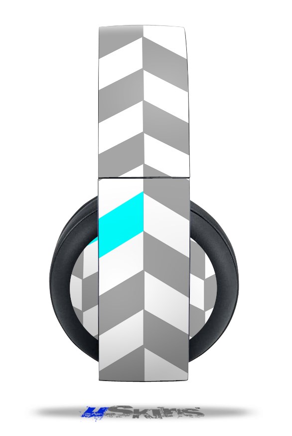 Vinyl Decal Skin Wrap compatible with Original Sony PlayStation 4 Gold Wireless Headphones Chevrons Gray And Aqua (PS4 HEADPHONES NOT INCLUDED)