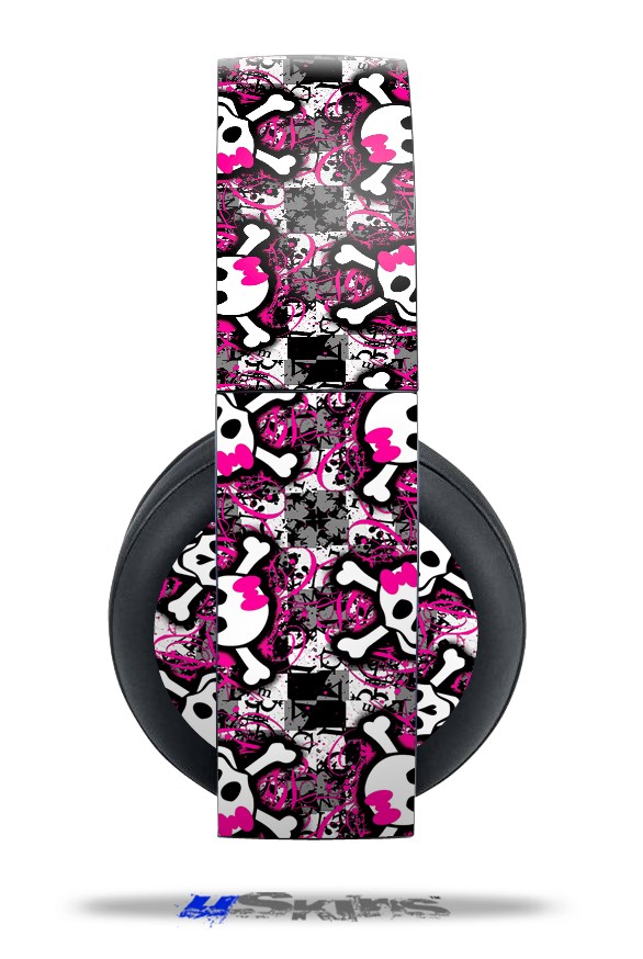 Vinyl Decal Skin Wrap compatible with Original Sony PlayStation 4 Gold Wireless Headphones Splatter Girly Skull Pink (PS4 HEADPHONES NOT INCLUDED)