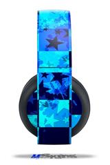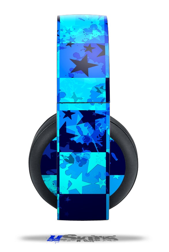 Vinyl Decal Skin Wrap compatible with Original Sony PlayStation 4 Gold Wireless Headphones Blue Star Checkers (PS4 HEADPHONES NOT INCLUDED)