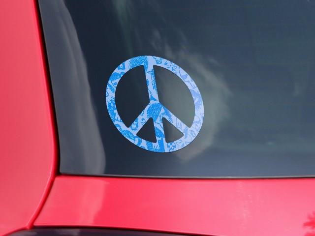 Skull Sketches Blue - Peace Sign Car Window Decal 6 x 6 inches