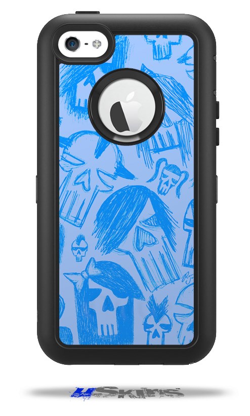 Skull Sketches Blue - Decal Style Vinyl Skin fits Otterbox Defender iPhone 5C Case (CASE SOLD SEPARATELY)