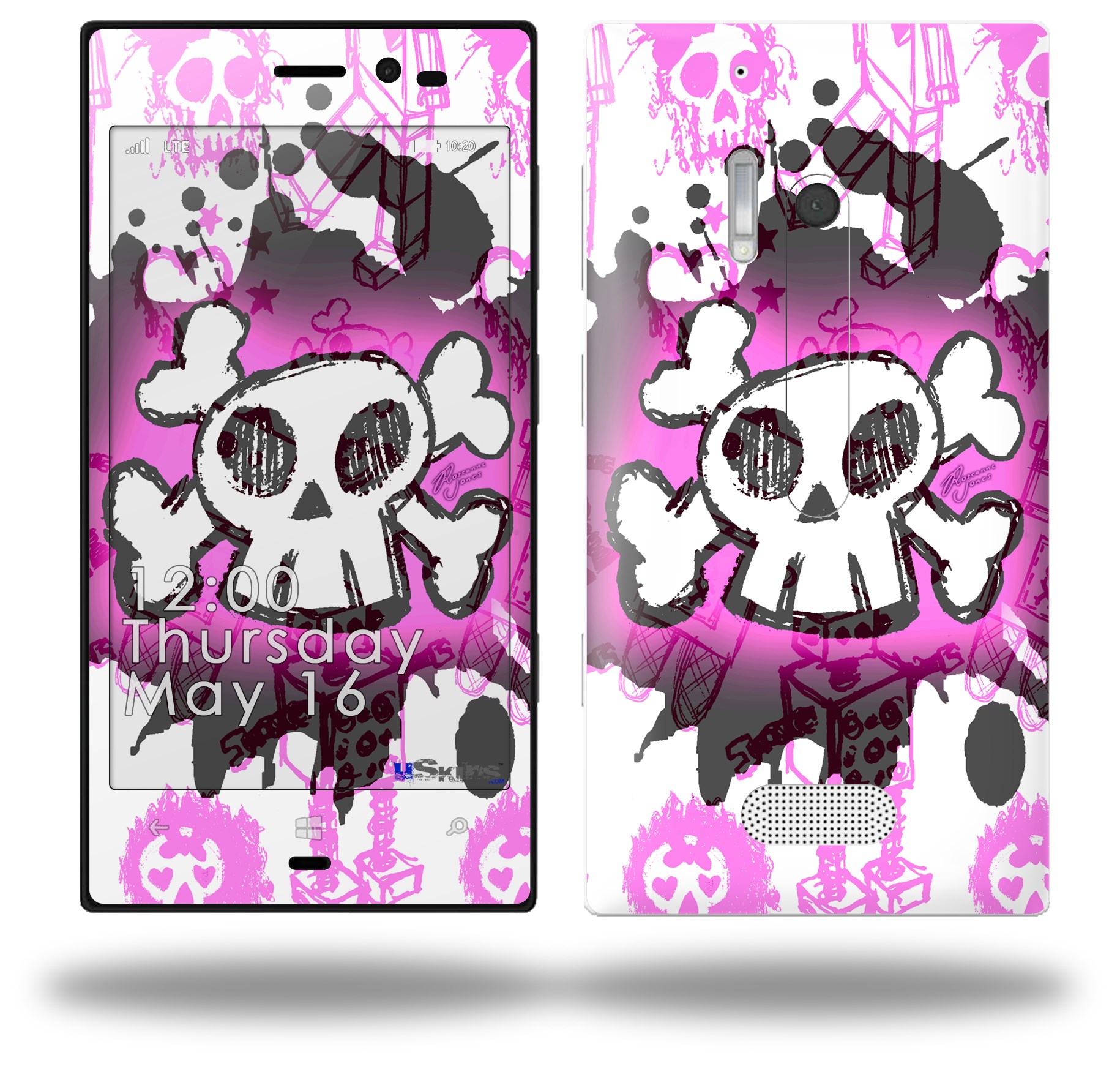 Cartoon Skull Pink - Decal Style Skin (fits Nokia Lumia 928)