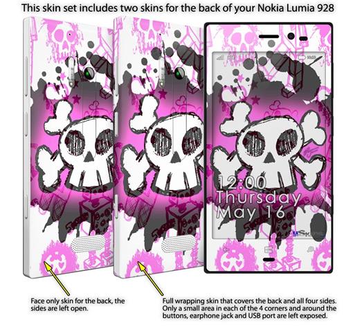 • Decal style vinyl skin covers front, back and side of Nokia Lumia 928 phone.