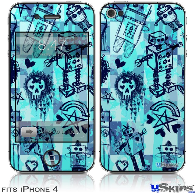 iPhone 4 Decal Style Vinyl Skin - Scene Kid Sketches Blue (DOES NOT fit newer iPhone 4S)