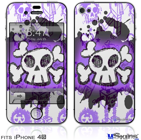 iPhone 4S Decal Style Vinyl Skin - Cartoon Skull Purple