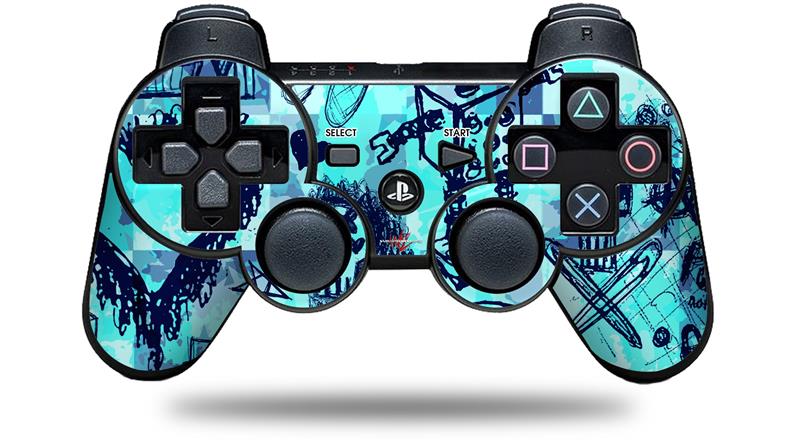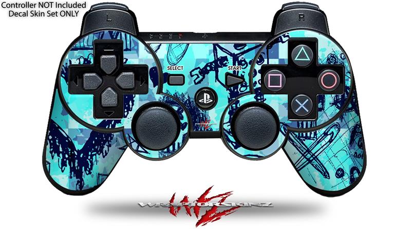 Sony PS3 Controller Decal Style Skin - Scene Kid Sketches Blue (CONTROLLER NOT INCLUDED)