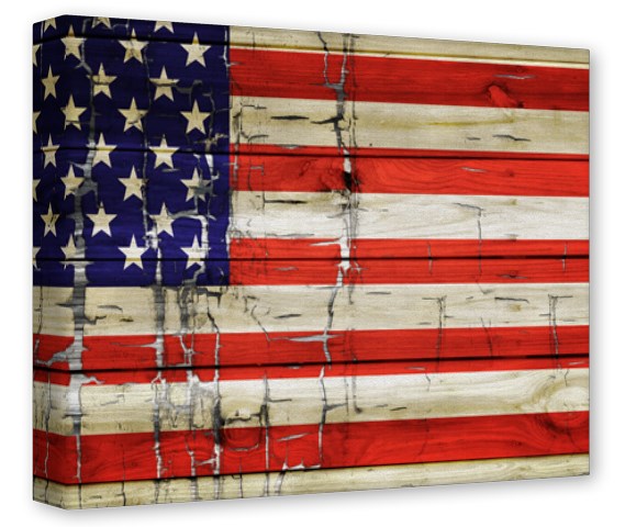 Gallery Wrapped 11x14x1.5 Canvas Art - Painted Faded and Cracked USA American Flag