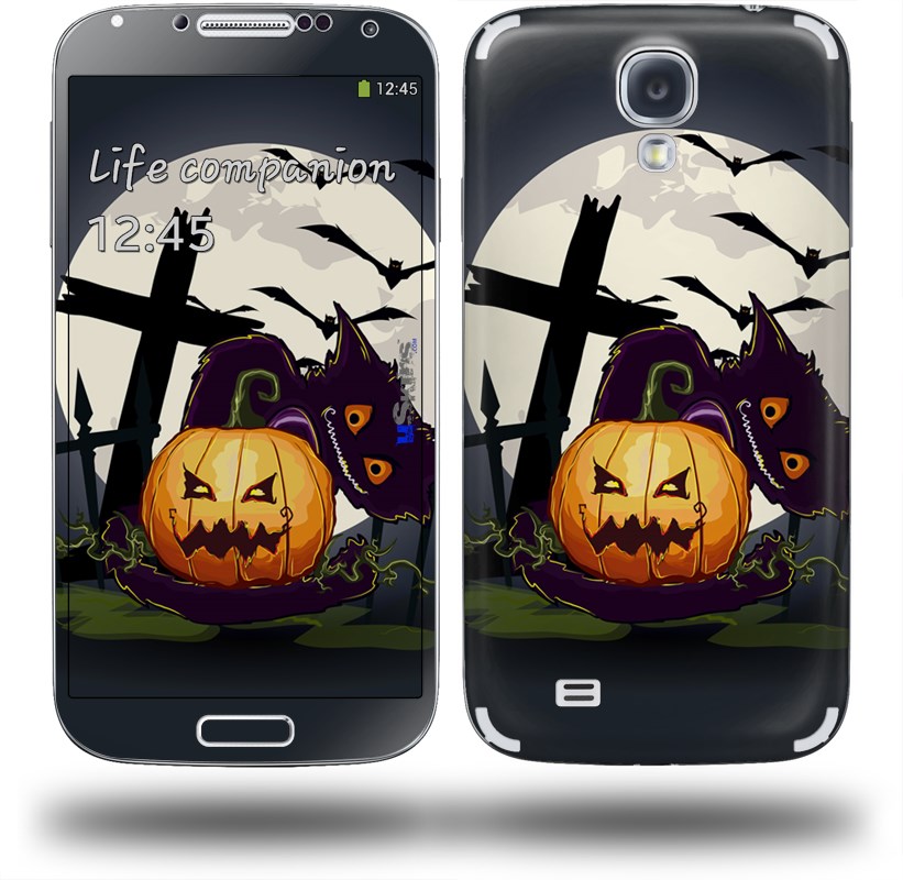 Halloween Jack O Lantern and Cemetery Kitty Cat - Decal Style Skin (fits Samsung Galaxy S IV S4)