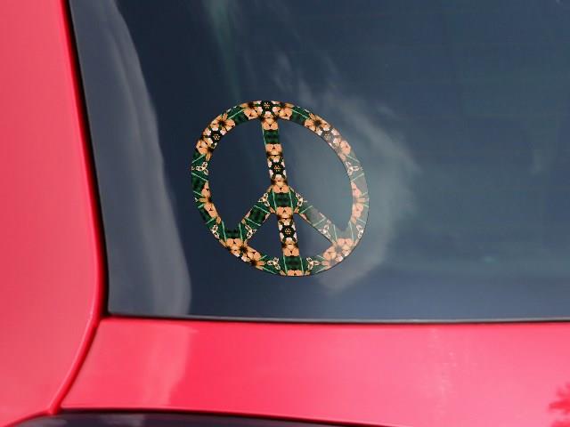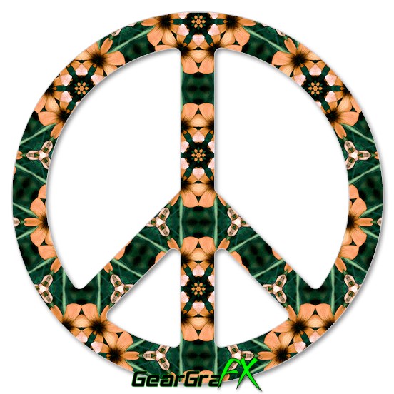 Floral Pattern Orange - Peace Sign Car Window Decal 6 x 6 inches