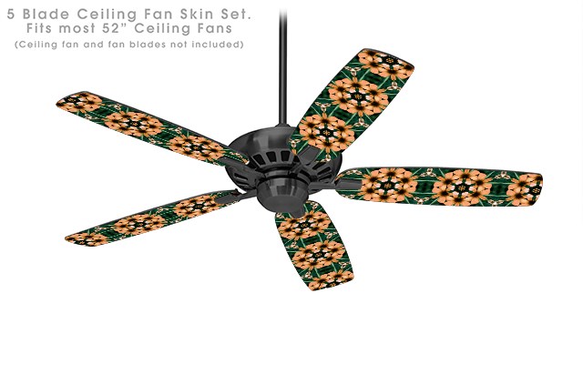 Floral Pattern Orange - Ceiling Fan Skin Kit fits most 52 inch fans (FAN and BLADES SOLD SEPARATELY)