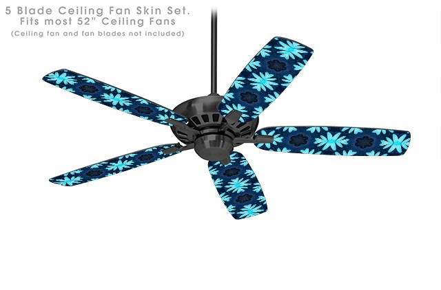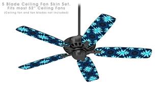 Abstract Floral Blue - Ceiling Fan Skin Kit fits most 52 inch fans (FAN and BLADES SOLD SEPARATELY)