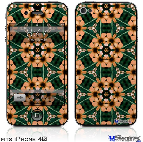 iPhone 4S Decal Style Vinyl Skin - Floral Pattern Orange