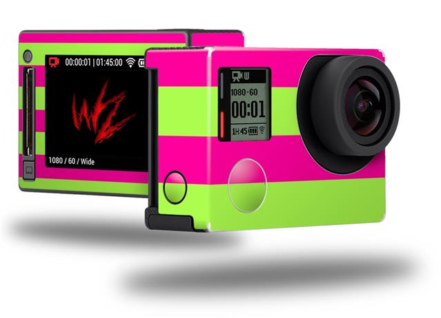 Psycho Stripes Neon Green and Hot Pink - Decal Style Skin fits GoPro Hero 4 Silver Camera (GOPRO SOLD SEPARATELY)