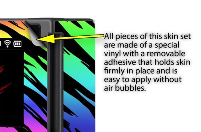 WraptoSkinz™ skins are superb photo quality designs and vibrant colors printed with special Eco-Friendly, fade resistant inks. Our skins are self-adhering flexible vinyl skins that helps prevent scratches. Made of composite, multi-layered commercial grade materials. The bottom layer is made with a special removable adhesive that is easily positioned and applied without air bubbles. We print your design on the bottom layer then bond a professional grade laminate over the entire skin adding a glossy protective finish.
