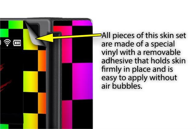 WraptoSkinz™ skins are superb photo quality designs and vibrant colors printed with special Eco-Friendly, fade resistant inks. Our skins are self-adhering flexible vinyl skins that helps prevent scratches. Made of composite, multi-layered commercial grade materials. The bottom layer is made with a special removable adhesive that is easily positioned and applied without air bubbles. We print your design on the bottom layer then bond a professional grade laminate over the entire skin adding a glossy protective finish.