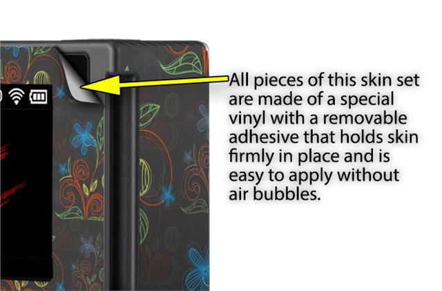 WraptoSkinz™ skins are superb photo quality designs and vibrant colors printed with special Eco-Friendly, fade resistant inks. Our skins are self-adhering flexible vinyl skins that helps prevent scratches. Made of composite, multi-layered commercial grade materials. The bottom layer is made with a special removable adhesive that is easily positioned and applied without air bubbles. We print your design on the bottom layer then bond a professional grade laminate over the entire skin adding a glossy protective finish.