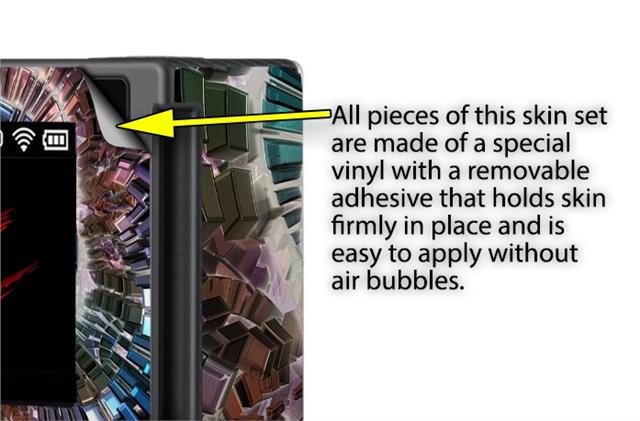 WraptoSkinz™ skins are superb photo quality designs and vibrant colors printed with special Eco-Friendly, fade resistant inks. Our skins are self-adhering flexible vinyl skins that helps prevent scratches. Made of composite, multi-layered commercial grade materials. The bottom layer is made with a special removable adhesive that is easily positioned and applied without air bubbles. We print your design on the bottom layer then bond a professional grade laminate over the entire skin adding a glossy protective finish.
