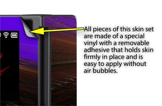 WraptoSkinz™ skins are superb photo quality designs and vibrant colors printed with special Eco-Friendly, fade resistant inks. Our skins are self-adhering flexible vinyl skins that helps prevent scratches. Made of composite, multi-layered commercial grade materials. The bottom layer is made with a special removable adhesive that is easily positioned and applied without air bubbles. We print your design on the bottom layer then bond a professional grade laminate over the entire skin adding a glossy protective finish.