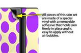 WraptoSkinz™ skins are superb photo quality designs and vibrant colors printed with special Eco-Friendly, fade resistant inks. Our skins are self-adhering flexible vinyl skins that helps prevent scratches. Made of composite, multi-layered commercial grade materials. The bottom layer is made with a special removable adhesive that is easily positioned and applied without air bubbles. We print your design on the bottom layer then bond a professional grade laminate over the entire skin adding a glossy protective finish.