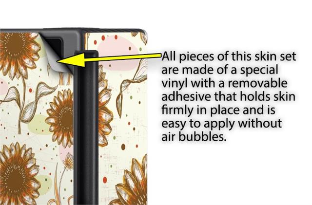 WraptoSkinz™ skins are superb photo quality designs and vibrant colors printed with special Eco-Friendly, fade resistant inks. Our skins are self-adhering flexible vinyl skins that helps prevent scratches. Made of composite, multi-layered commercial grade materials. The bottom layer is made with a special removable adhesive that is easily positioned and applied without air bubbles. We print your design on the bottom layer then bond a professional grade laminate over the entire skin adding a glossy protective finish.