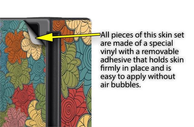 WraptoSkinz™ skins are superb photo quality designs and vibrant colors printed with special Eco-Friendly, fade resistant inks. Our skins are self-adhering flexible vinyl skins that helps prevent scratches. Made of composite, multi-layered commercial grade materials. The bottom layer is made with a special removable adhesive that is easily positioned and applied without air bubbles. We print your design on the bottom layer then bond a professional grade laminate over the entire skin adding a glossy protective finish.