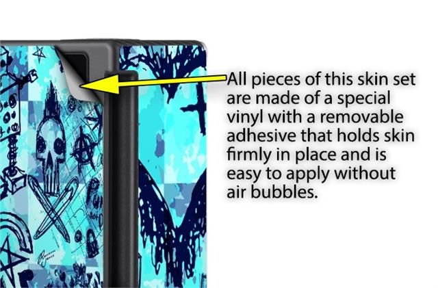 WraptoSkinz™ skins are superb photo quality designs and vibrant colors printed with special Eco-Friendly, fade resistant inks. Our skins are self-adhering flexible vinyl skins that helps prevent scratches. Made of composite, multi-layered commercial grade materials. The bottom layer is made with a special removable adhesive that is easily positioned and applied without air bubbles. We print your design on the bottom layer then bond a professional grade laminate over the entire skin adding a glossy protective finish.