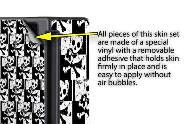 WraptoSkinz™ skins are superb photo quality designs and vibrant colors printed with special Eco-Friendly, fade resistant inks. Our skins are self-adhering flexible vinyl skins that helps prevent scratches. Made of composite, multi-layered commercial grade materials. The bottom layer is made with a special removable adhesive that is easily positioned and applied without air bubbles. We print your design on the bottom layer then bond a professional grade laminate over the entire skin adding a glossy protective finish.